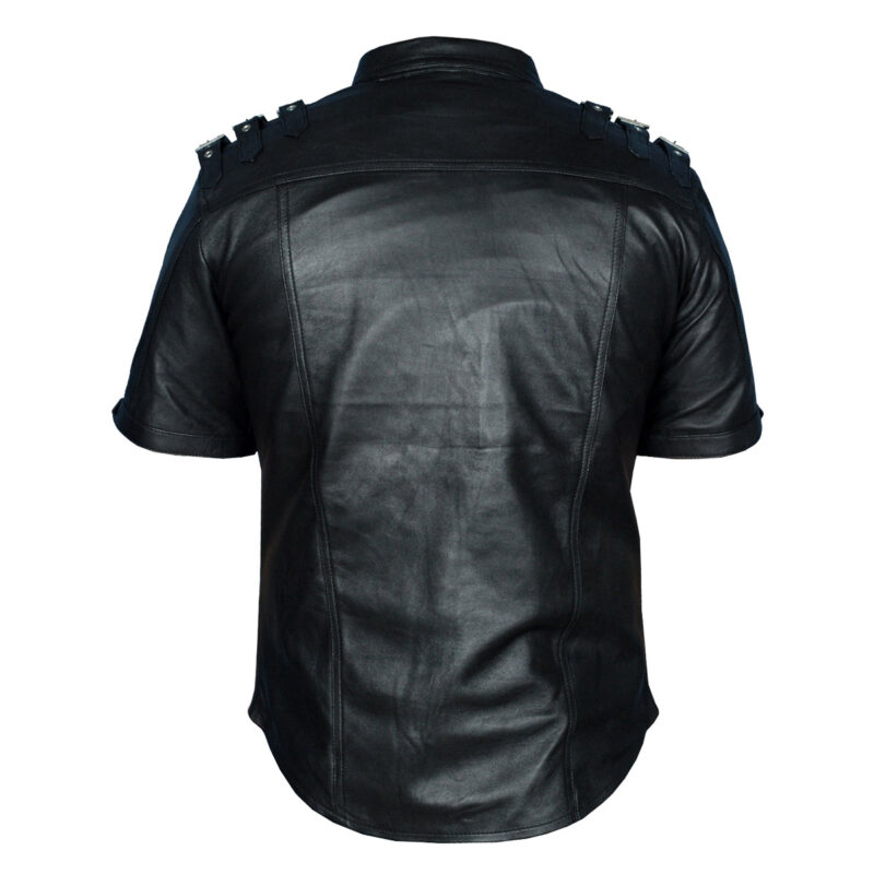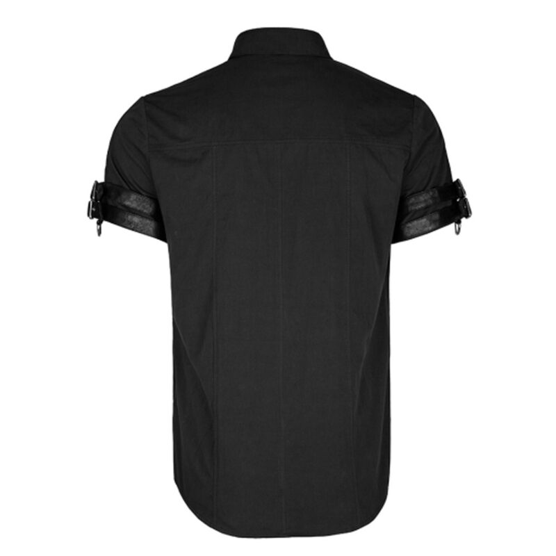 Steampunk Casual Shirt With Black Leather Pocket And Adjustable Straps