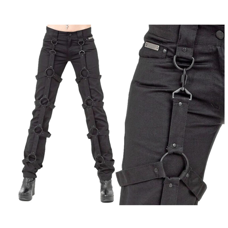 Men Gothic Punk Pants with Harness Straps | Industrial Black Trousers