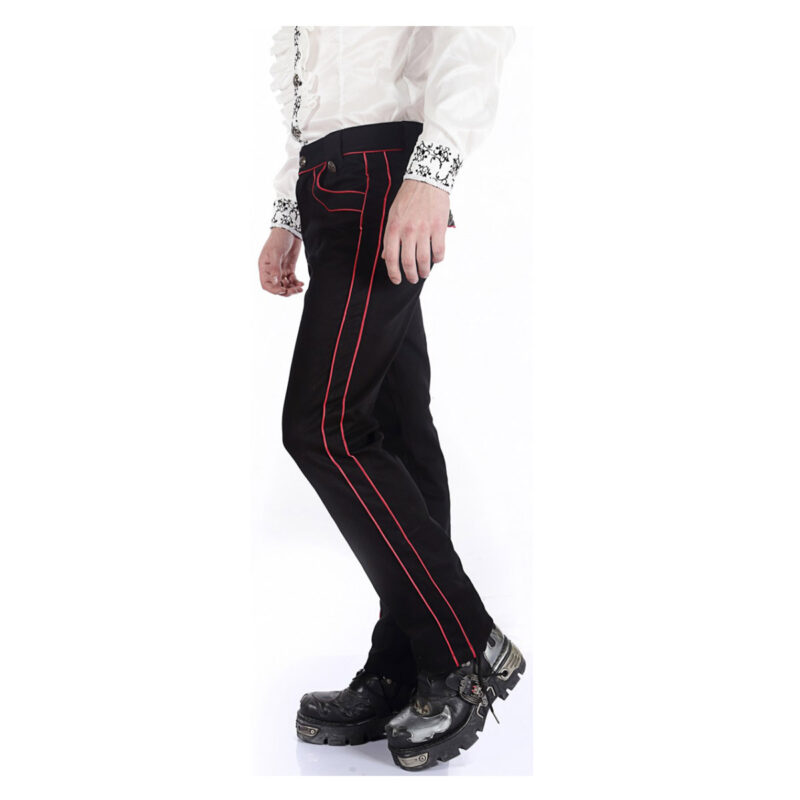 Men Black Red Gothic Military Officer Pants | Steampunk Pentagram Trousers