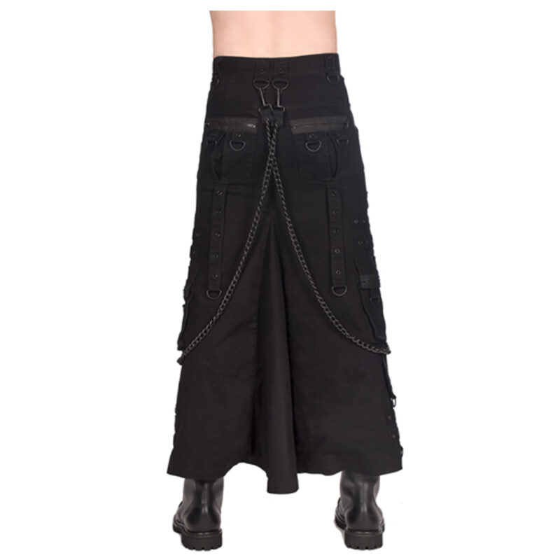 Men Gothic Cyberpunk Bondage Skirt | Long Black Alternative Clothing