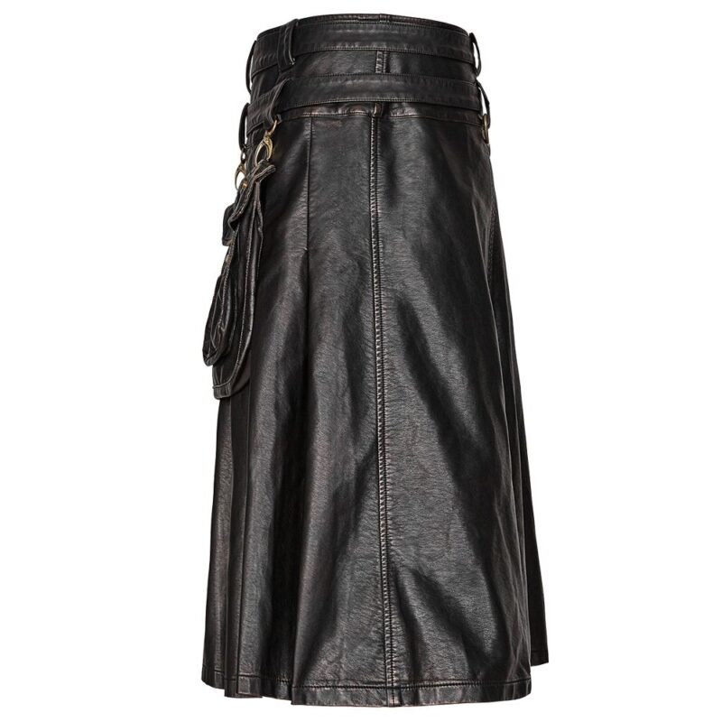 Men Gothic Steampunk Utility Kilt | Black Faux Leather Cargo Kilt