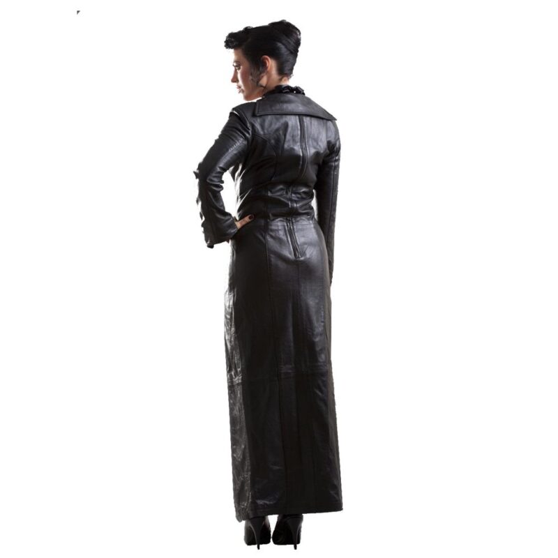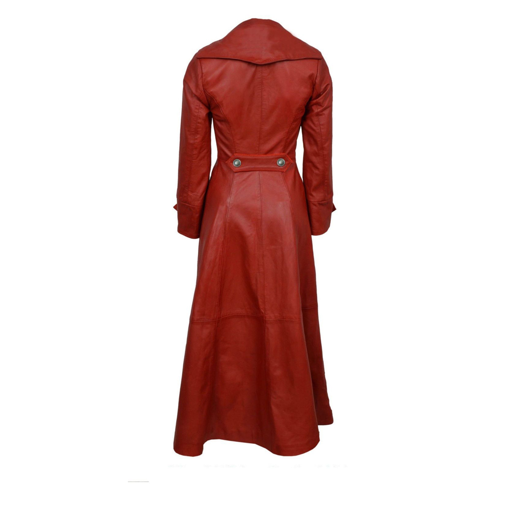 Women Full-Length Red Military Trench Coat | Real Leather Gothic Outerwear