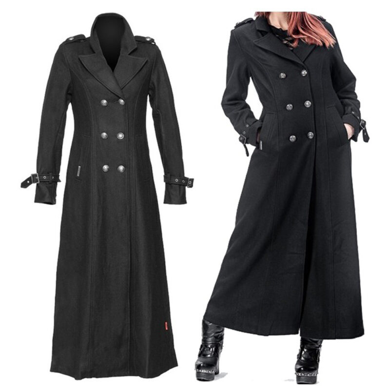Women Punk Military Coat Winter Uniform Style High Collar Wool Coat Girl Soldier