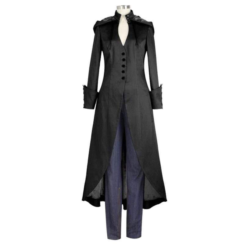 Women Gothic Spiked Shoulder Long Coat | Steampunk Punk Black Trench