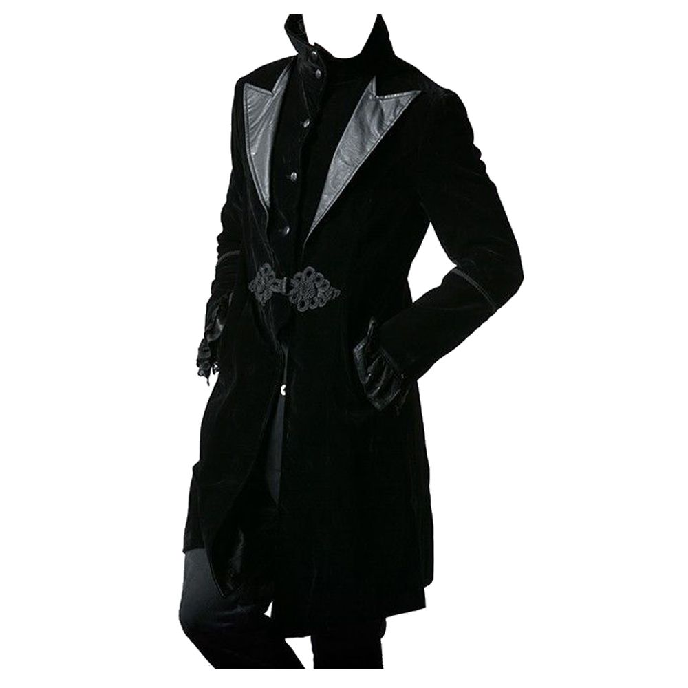 Men Gothic Buckle Fastening Leather Coat