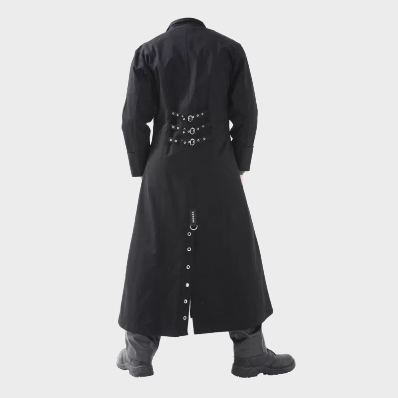 Men Gothic Full Length D-Ring Coat | Black Cotton Trench