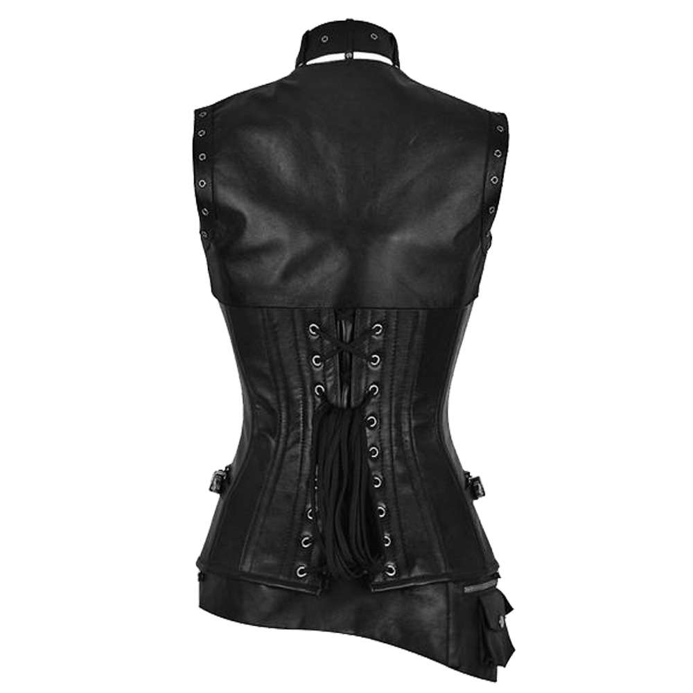 Sexy Women Leather Steampunk Corset with Zipper Waist