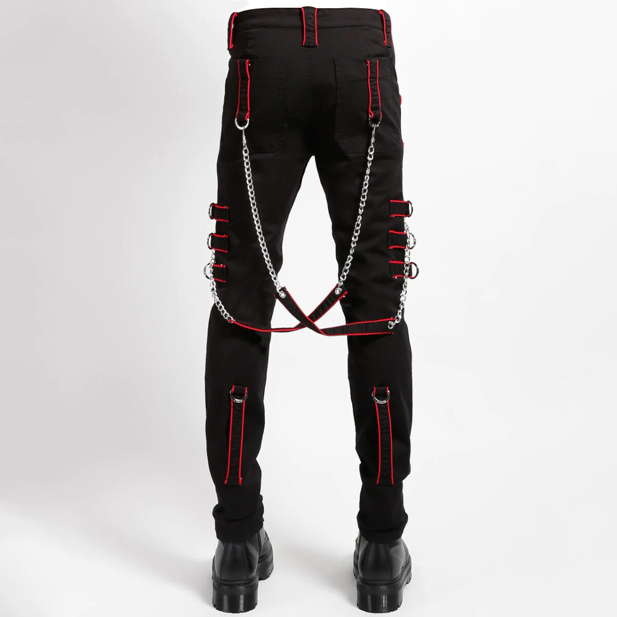 Men Gothic Pant Tripp Band Pant Black and Red Trims Pants Emo Punk Pant