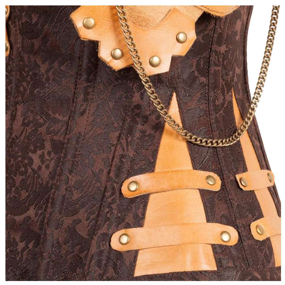 Steampunk Overbust Corset with Removable Neck Gear – Brown Leather & Brocade