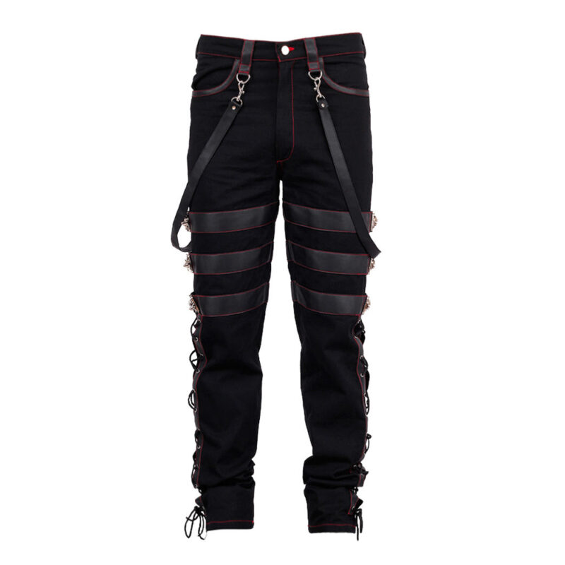 Men Gothic Punk Pants – Slim Fit with Straps & Zippers