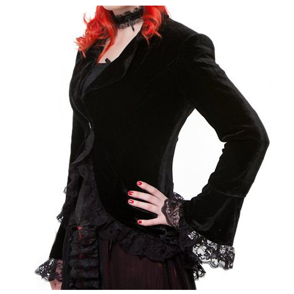 Women Gothic Corset Coat – Lace Trim Velvet Jacket (Fitted Black Retro Victorian Lolita Style)