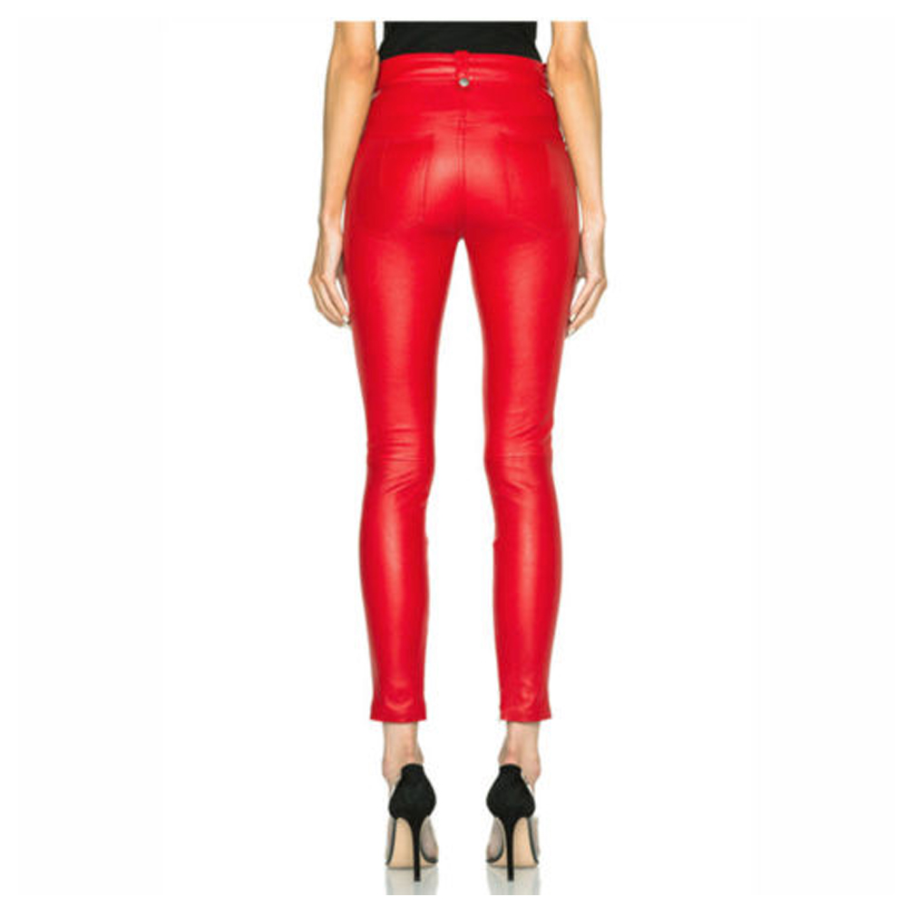 Women Hot Red Punk PU Leather Pants | Gothic Pencil Trousers