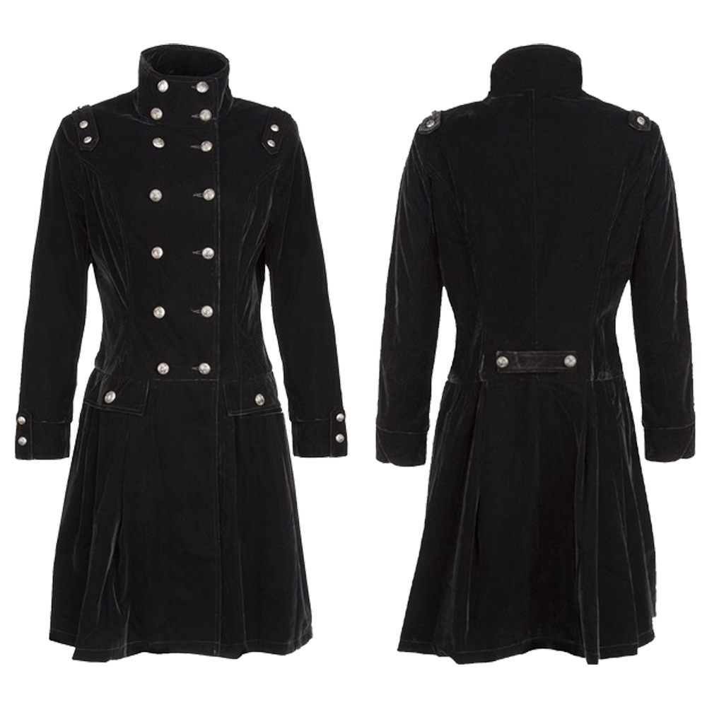 Women Gothic Military Style Coat | Black Officer Fashion Coat with Golden Buttons