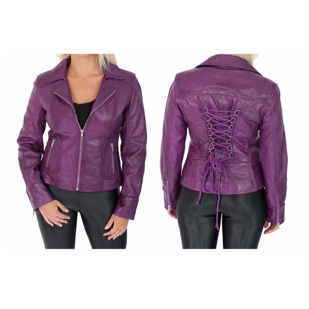 Women Purple Fitted Back Laced Leather Gothic Jacket