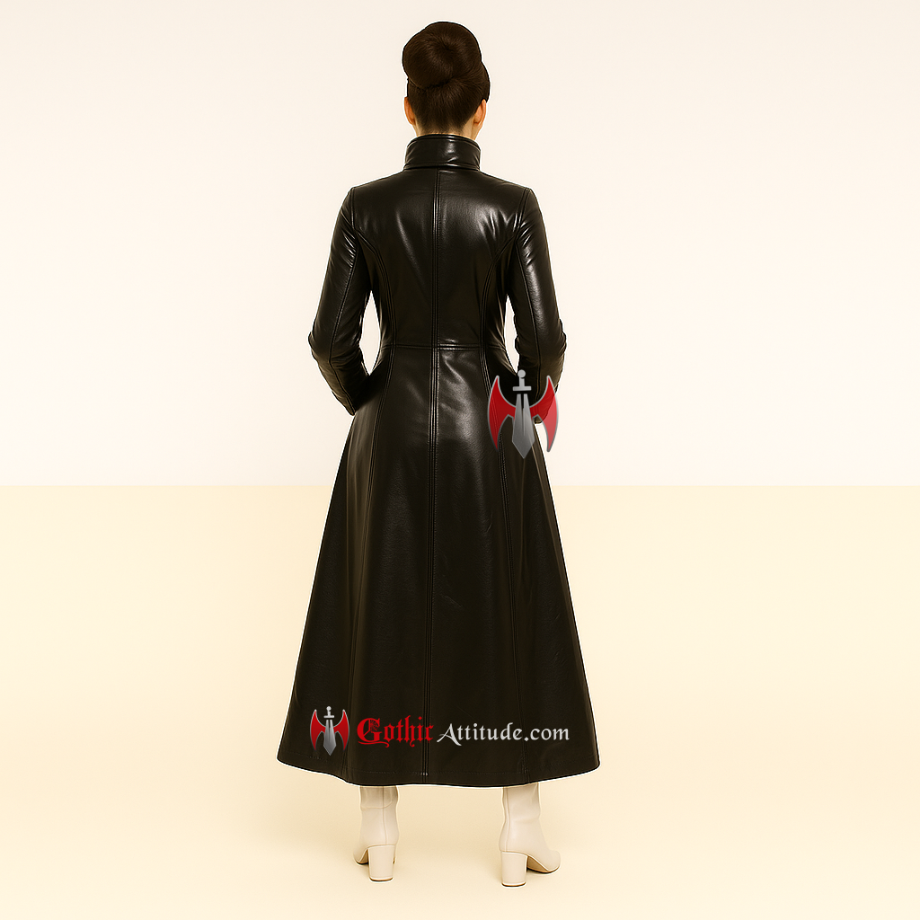 Women Real Leather Gothic Long Coat | Steampunk Black Trench Coat