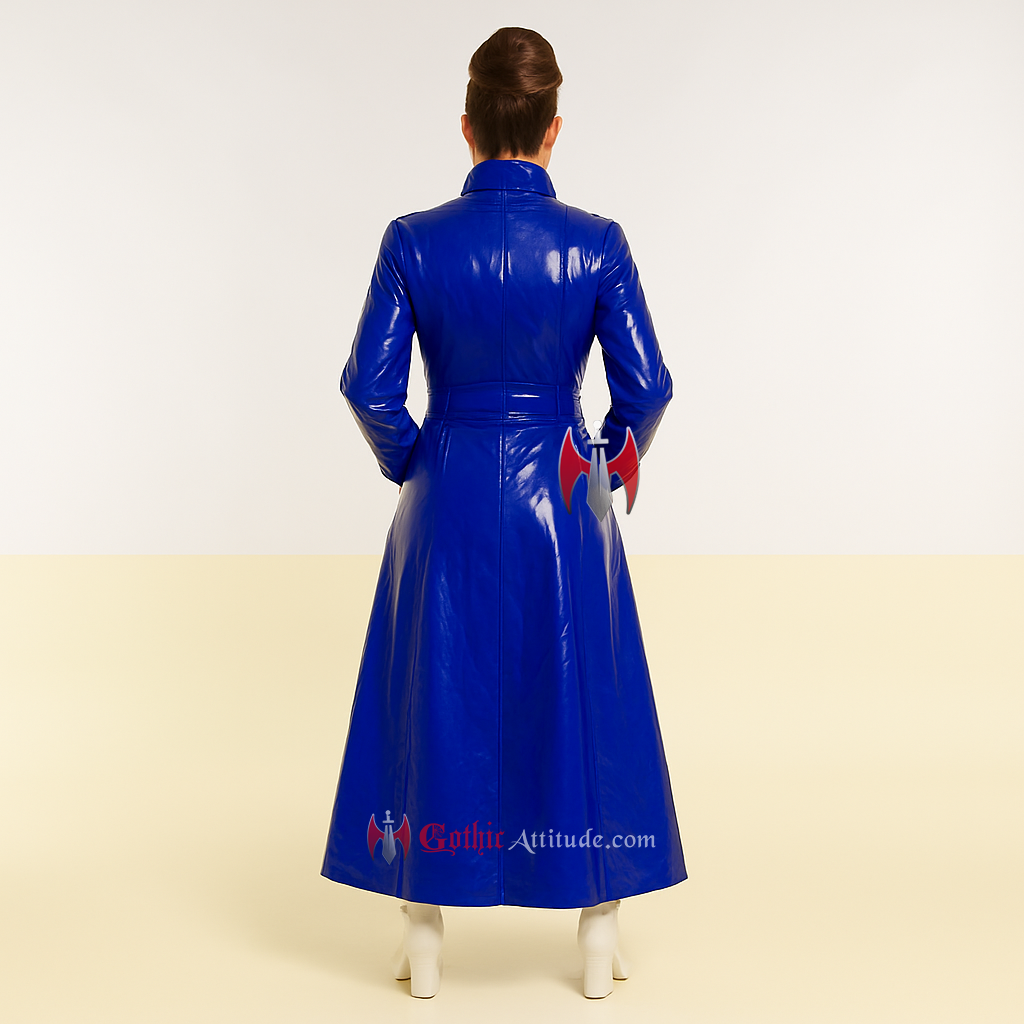Women PVC Vinyl Long Coat | Blue PVC Raincoat Trench Coat