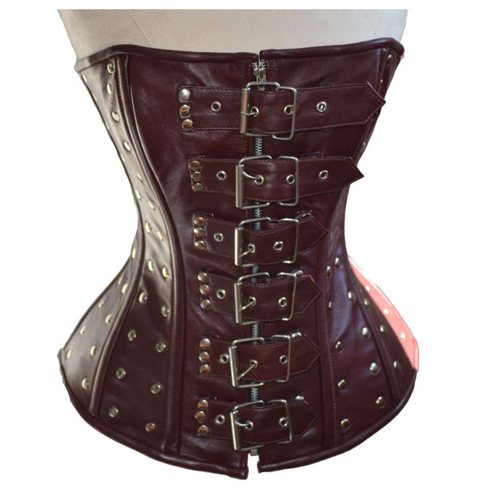 Women Steampunk Style Real Sheepskin Leather Corset – Steel Boned Gothic Waist Training