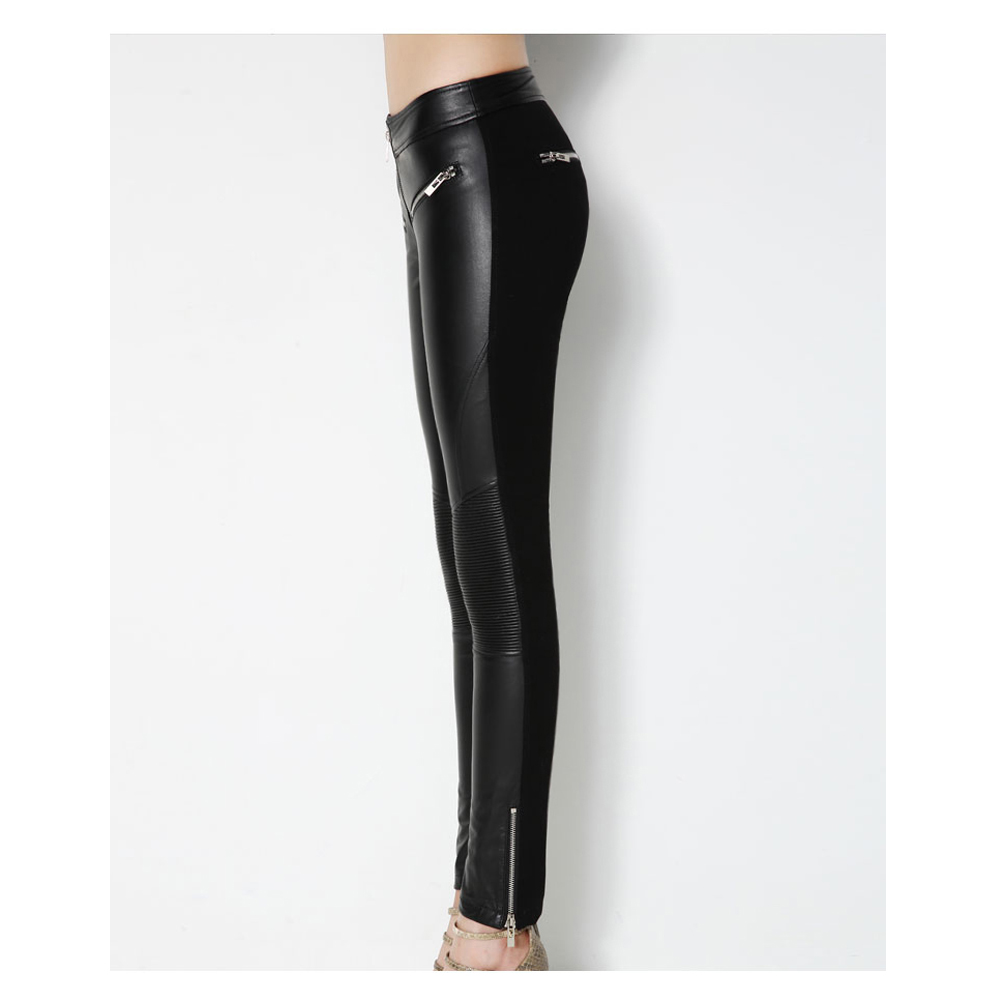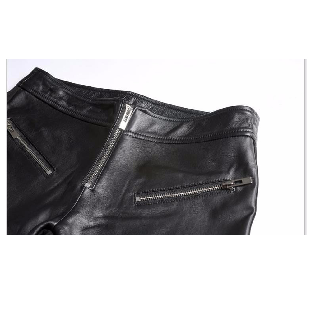 Elevate your wardrobe with these Women Genuine Lambskin Leather Pants, designed for a sleek and sophisticated look. Crafted from premium sheepskin leather, these pants feature a skinny pencil style fit that perfectly contours your silhouette. The mid-rise waist, zipper fly closure, and flat front design create a refined, modern edge, while decorative faux zippers add a bold, fashion-forward touch. Ideal for pairing with gothic, punk, or chic evening outfits, these pants are a must-have for women who value both luxury and style.